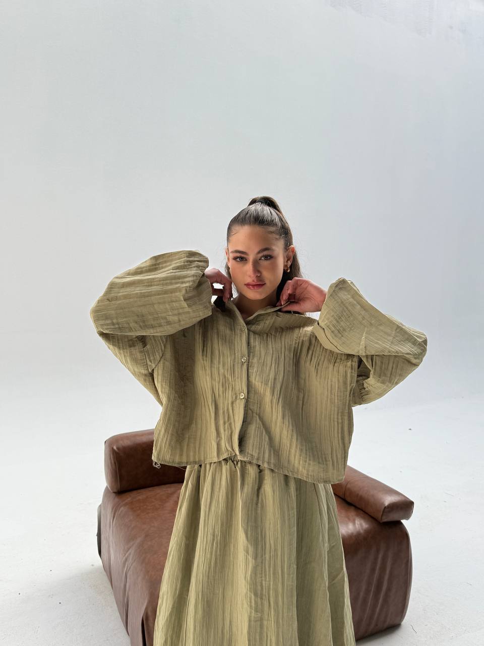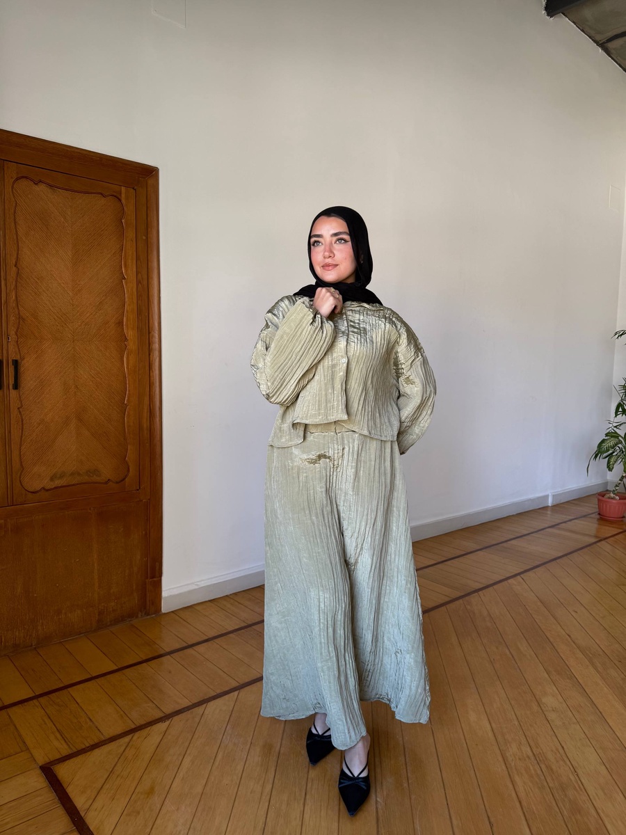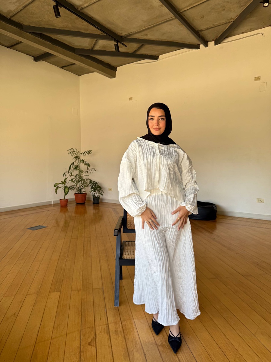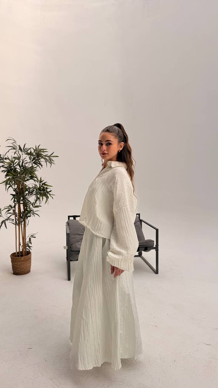 سوت مكون من سكيرت وقميص كروب 🙈✨ ستايل جريء وشيك، تلبيس مريح يدي لوك مختلف يناسب كل الإطلالات 👌🔥