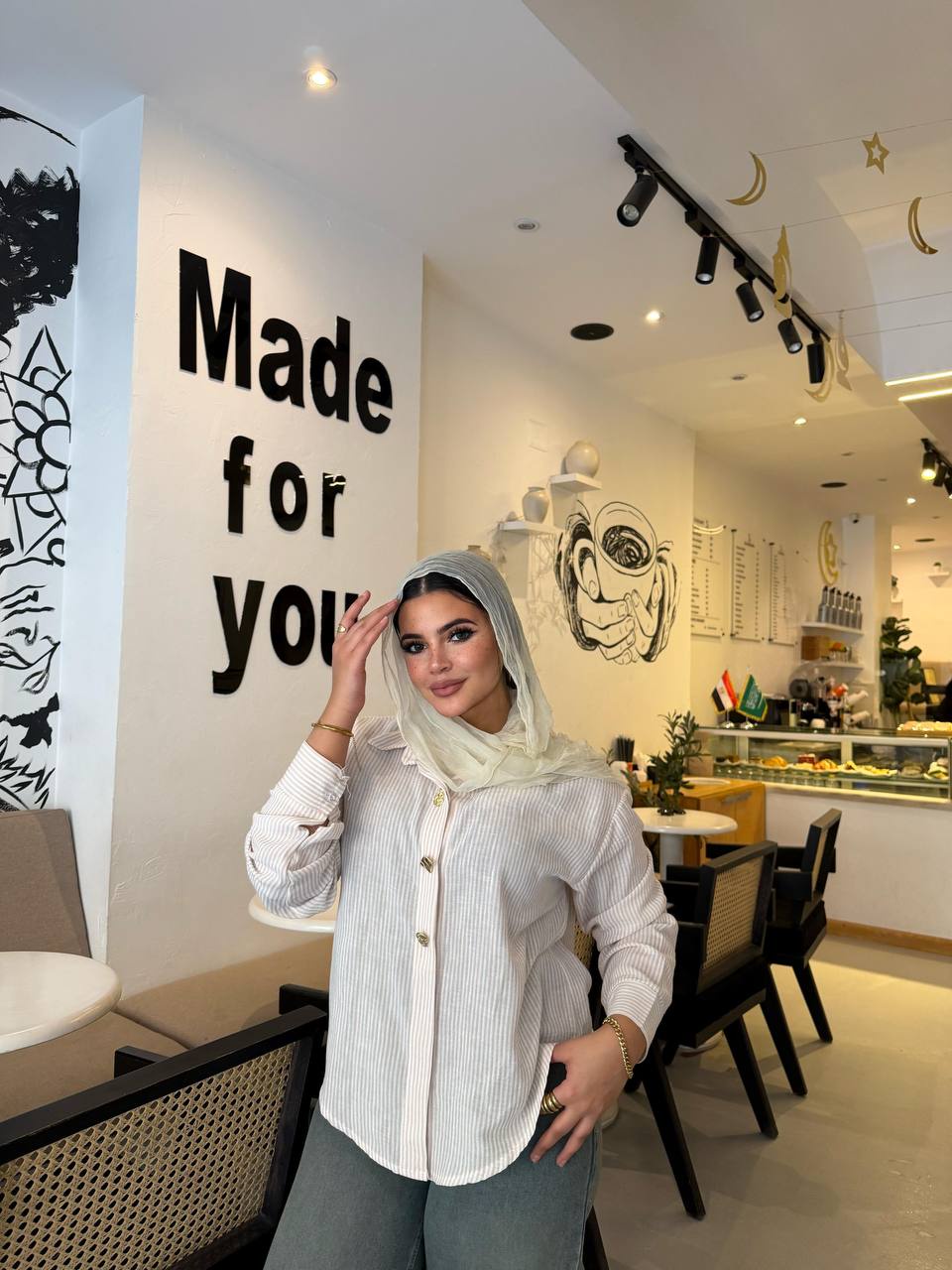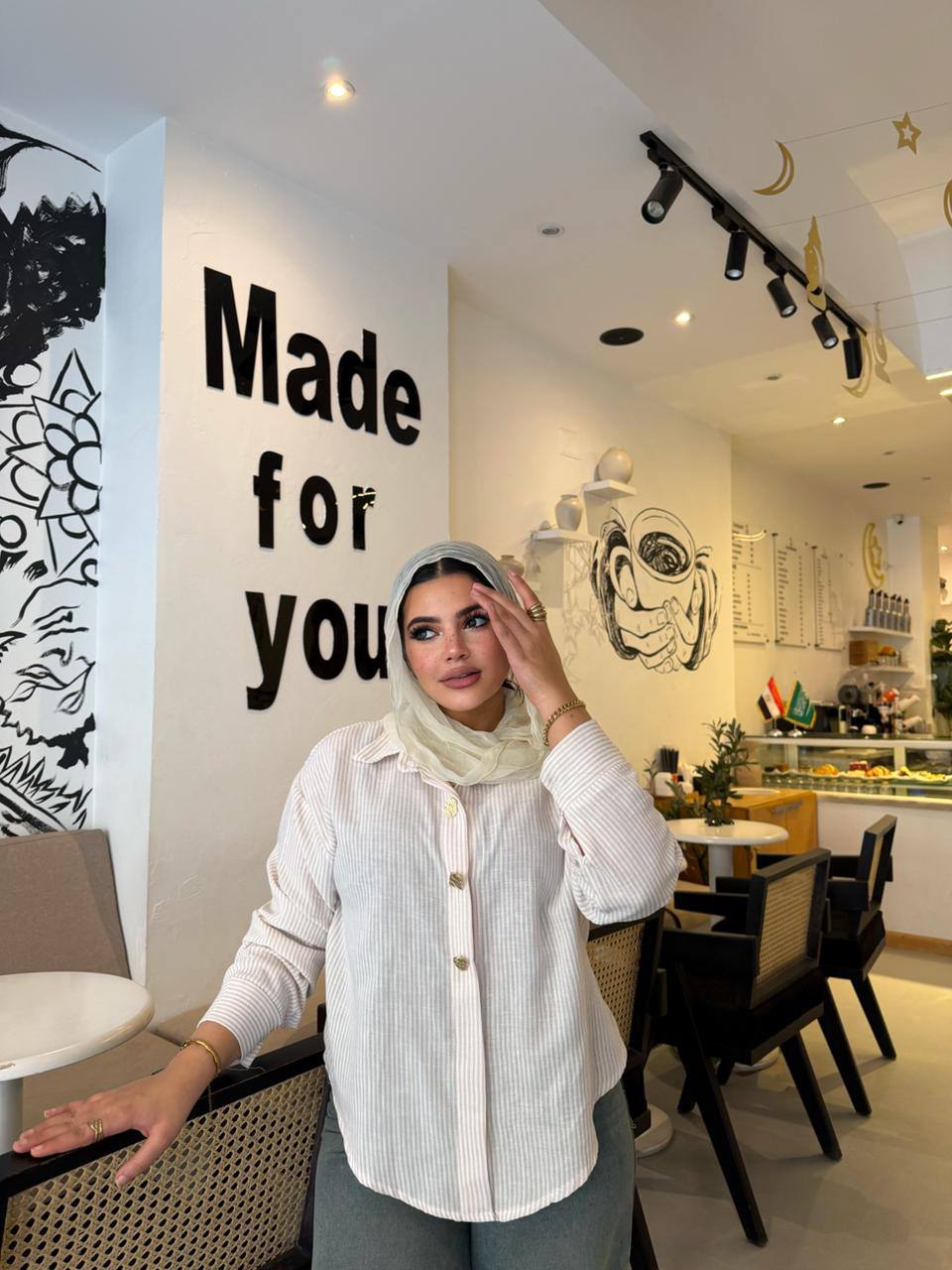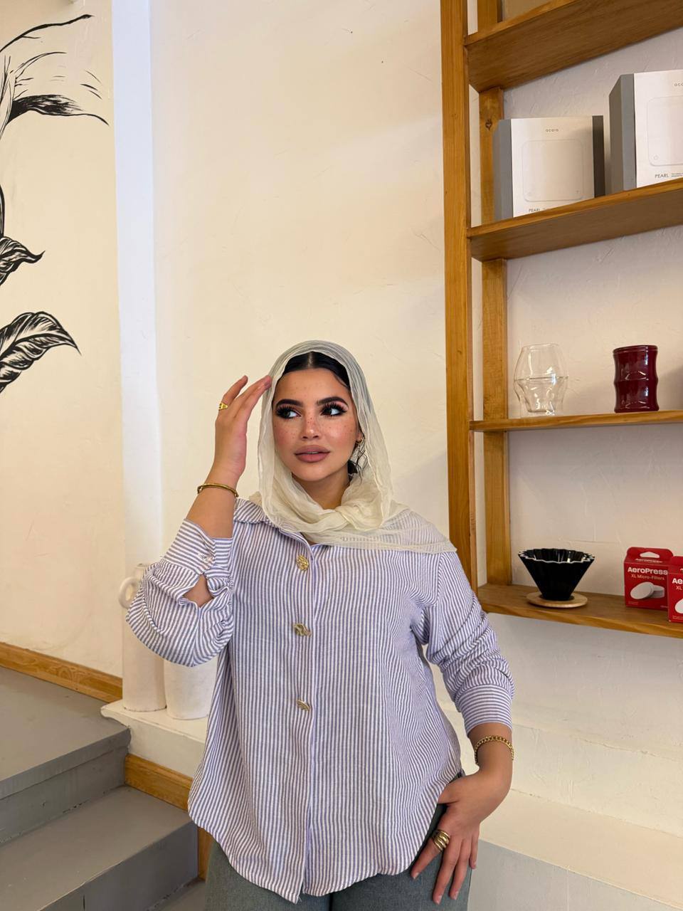 شميز كتان مقلم 😍✨ خامة خفيفة ومريحة، ستايل شيك وهادي يناسب كل الإطلالات الصيفي 👌💖