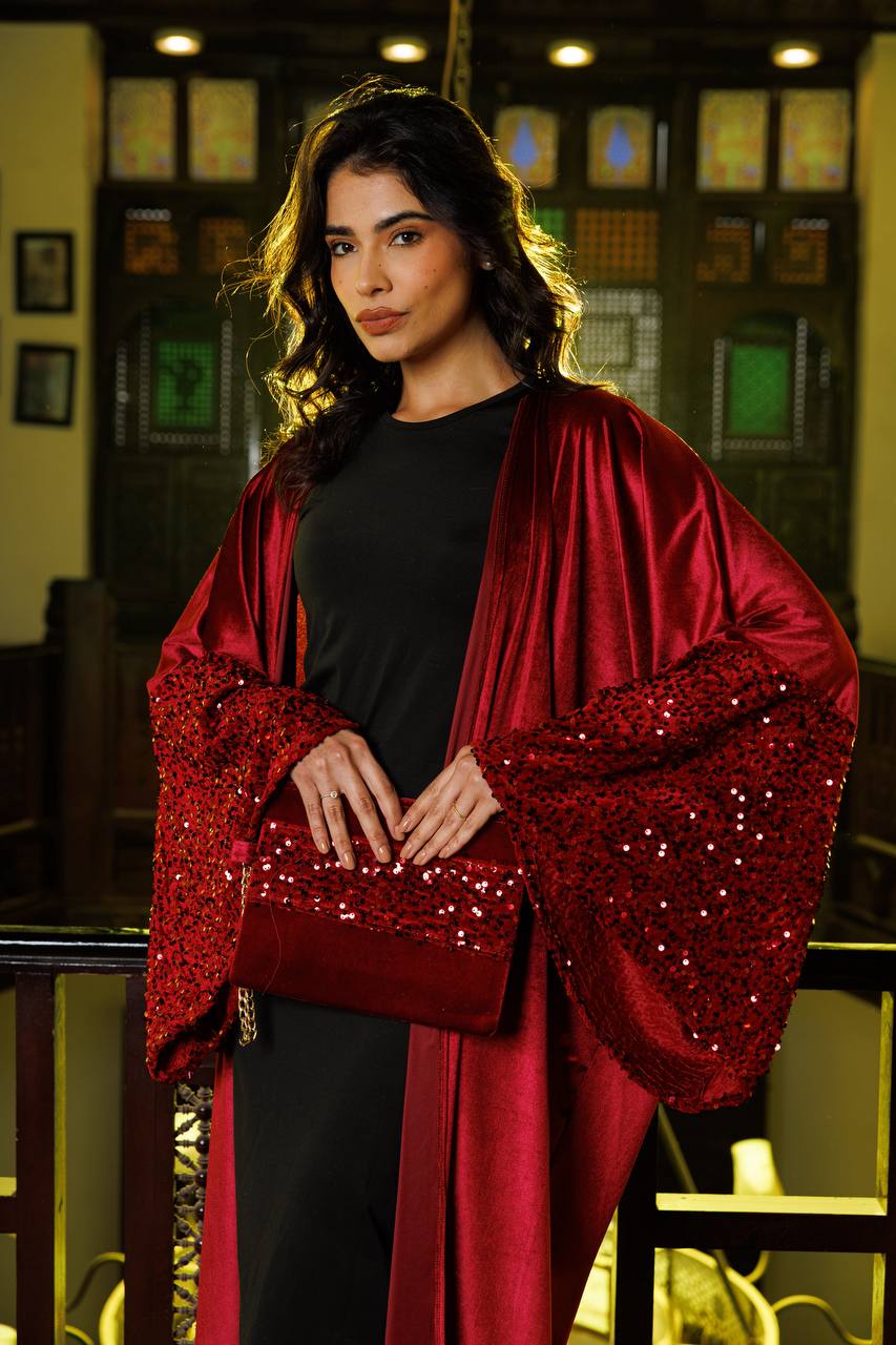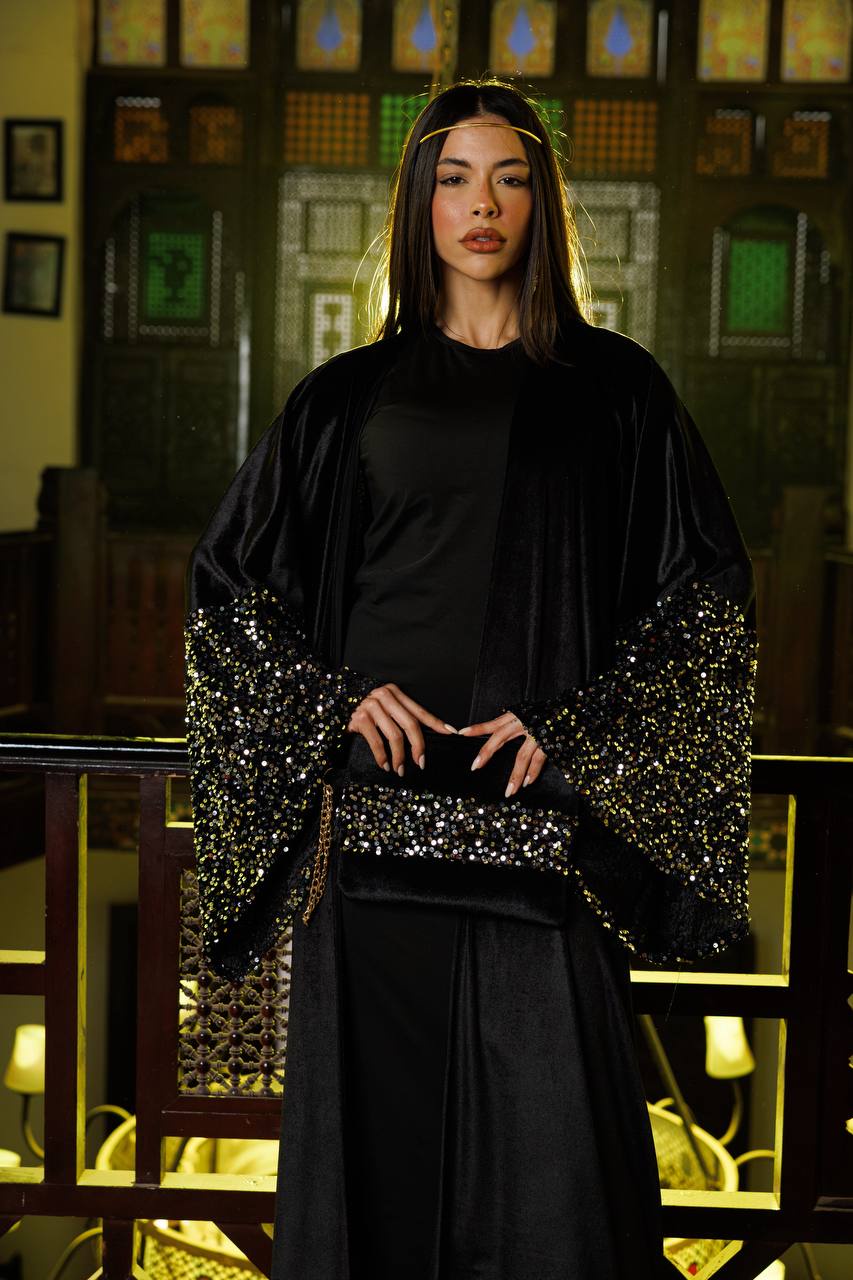 كاردي من خامة قطيفة ناعمة بتصميم أنيق، أكمام مزينة بالترتر تضيف لمسة فخامة ولمعان، ومعاه شنطة تكمل اللوك. قطعة مميزة للمناسبات والطلعات الخاصة ♥️