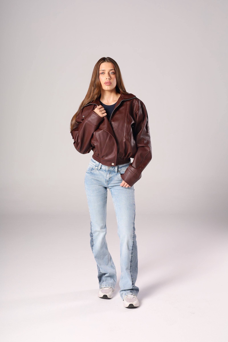 جاكت جلد بخامة عالية الجودة، تصميم ترندي قالب الدنيا فعلًا 🤍👏 قطعة أساسية لأي ستايل شتوي ومش هتحتاجي تفكري مرتين قبل ما تختاريها.